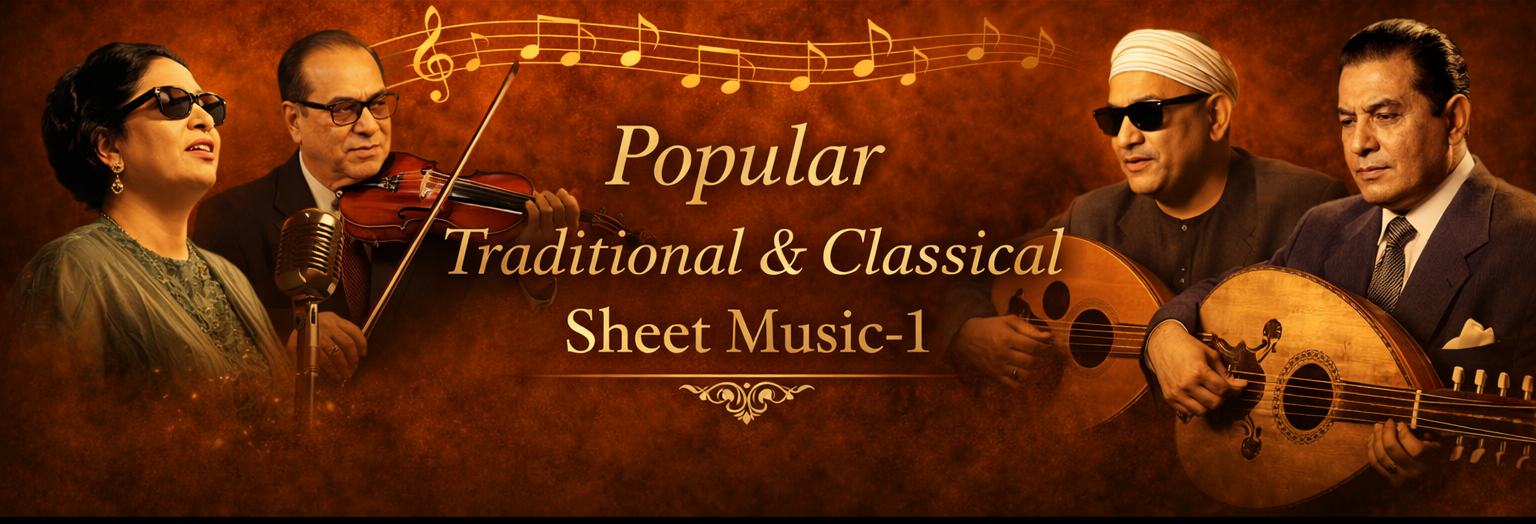 Sheet Music for 27 most popular Traditional and Classical songs, including 10 Adwar (S. Doar) and Monologues, 10 Muwashahat (S. Muwashah) and 7 Qasaid (s. Qasida)